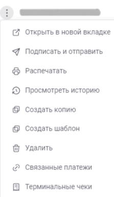 • Вы можете также нажать на три точки слева каждого черновика, чтобы подписать и отправить, распечатать, создать копию, шаблон, или удалить черновик.