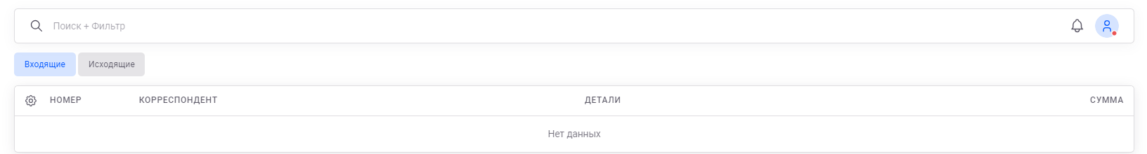 На этой странице, можно увидеть электронные платежные требования, которые можно фильтровать нажимая на "Входящие" или "Исходящие".