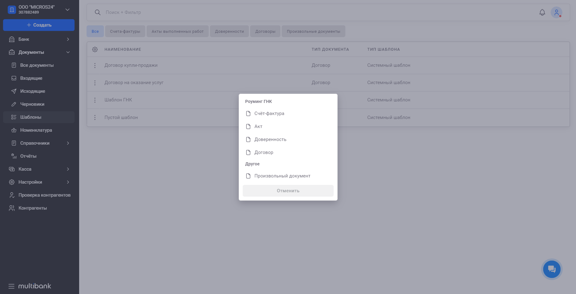 • Чтобы создать новый шаблон, нажмите на кнопку "Создать" и следуйте инструкциям.
